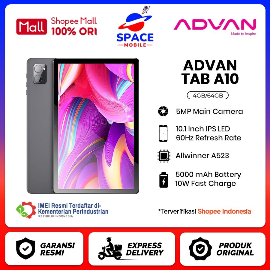 Advan Tablet A10 [4GB+64GB] - Garansi Resmi 1 Tahun