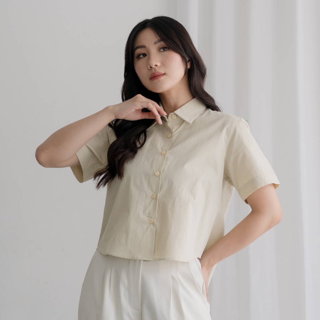 Luzea Alora Shirt | Kemeja Atasan Crop Top Basic Wanita | Lengan Pendek Polos | Katun Premium