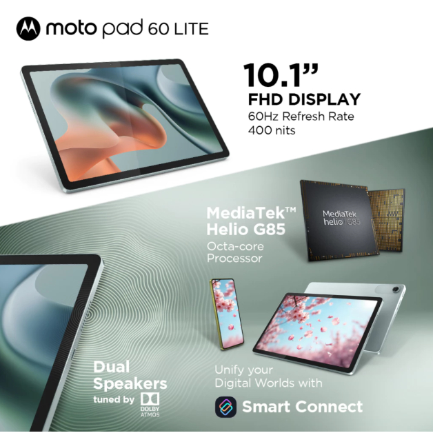 MOTO PAD LITE 60 Mediatek Helio G85 - RAM 4GB / 128GB - 10.1" WUXGA 60Hz Touch 5100mAh + CASE