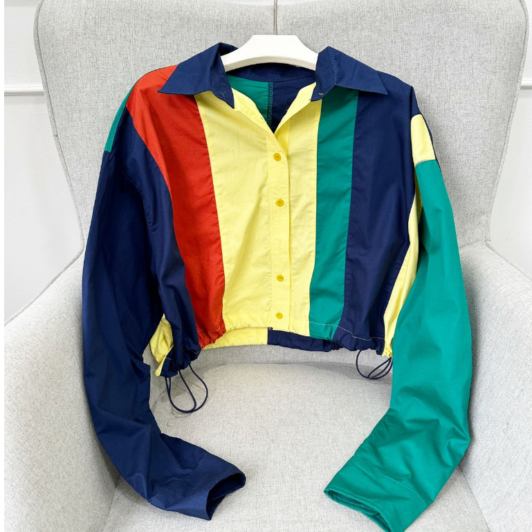 Be.Gracious-Rainbow Crop Shirt / Kemeja Crop Wanita / Kemeja Rainbow / Kemeja Model Terbaru