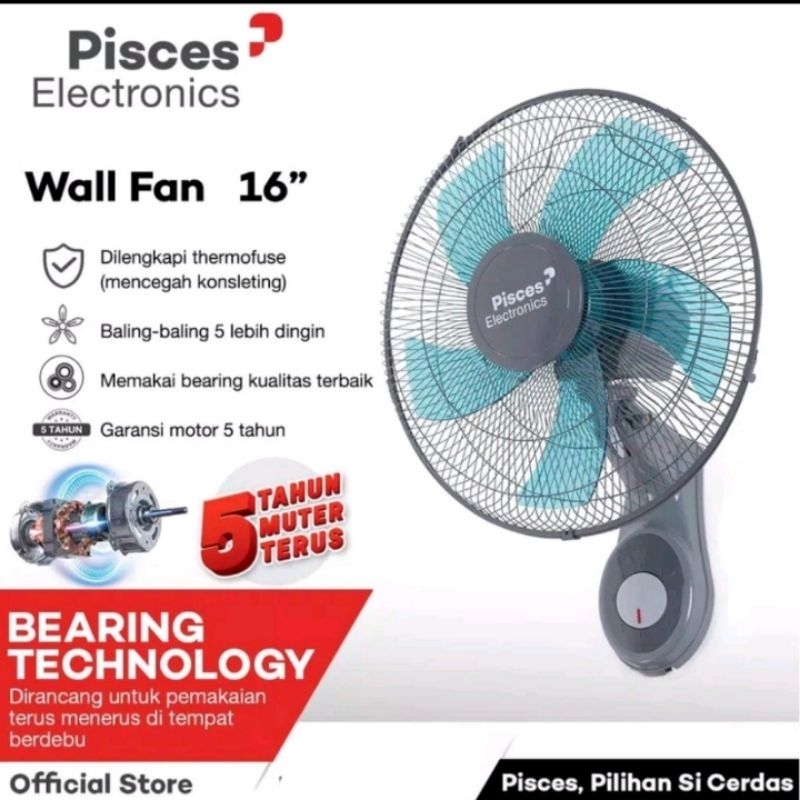 Kipas Angin Dinding/Gantung Pisces 16In Dengan Teknologi Bearing Garansi 5 Tahun Sni 1611Pro