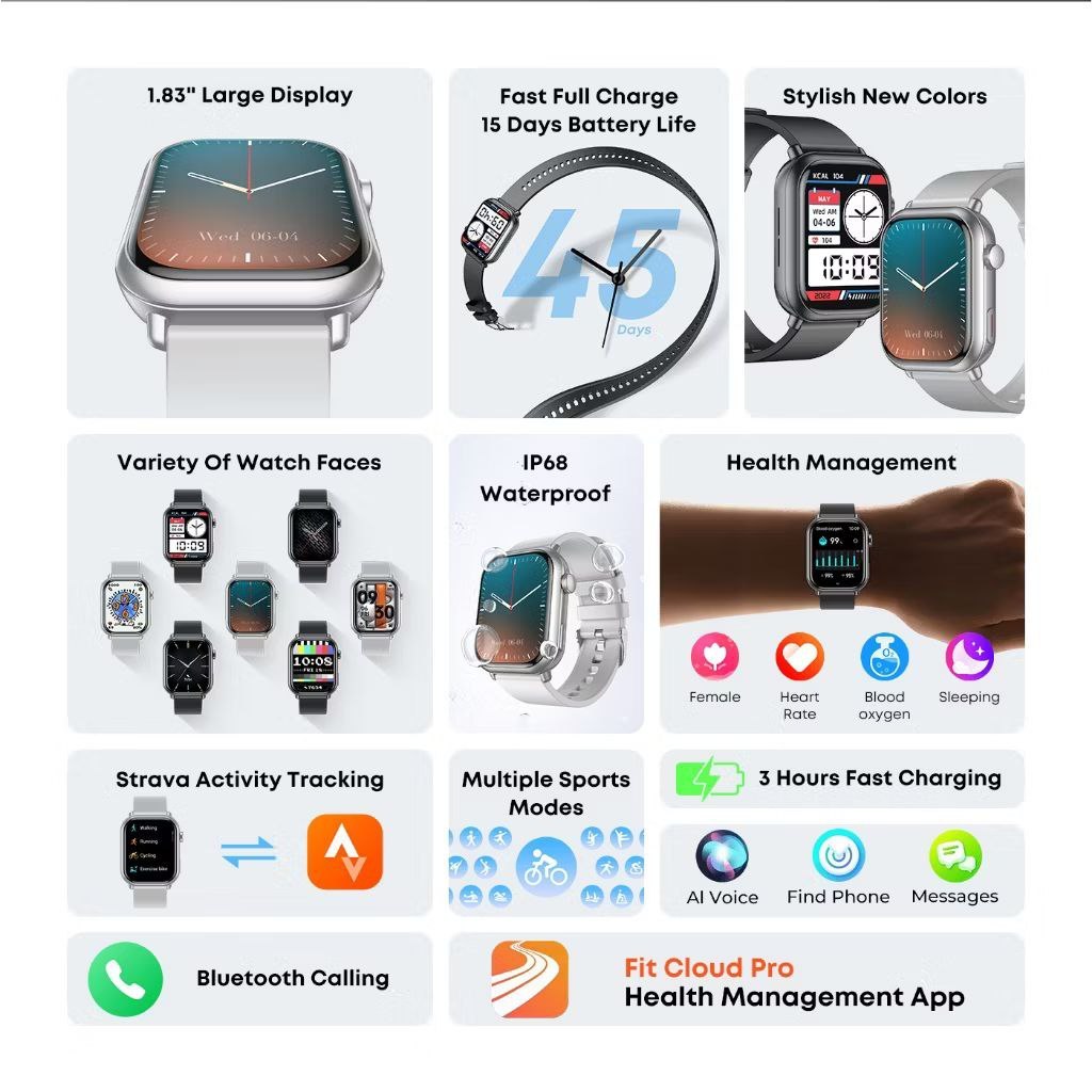 Acd OLIKE Smartwatch Meta S2 1.83" HD Screen 1000mAh Sync Strava IP68 Tahan Air Healt & Sport Monitoring
