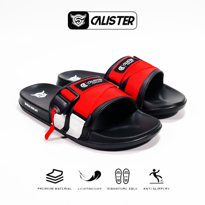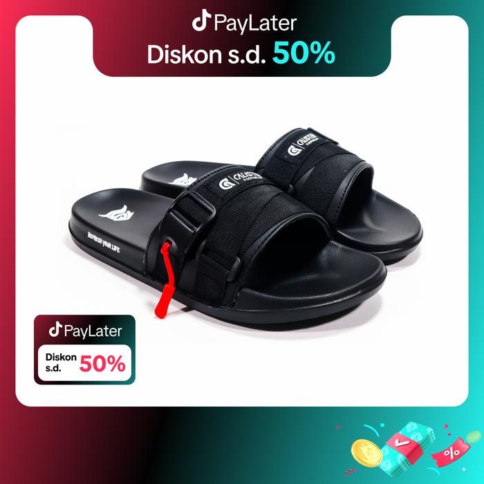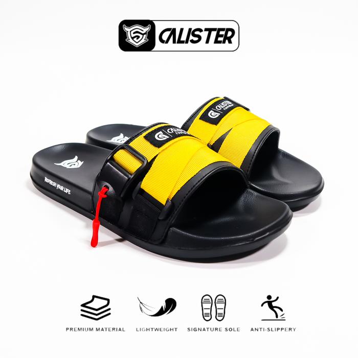 CALISTER SANDAL PRIA SELOP DEWASA CASUAL SLIDE COWOK CEWEK SLIP ON KARET - BLACK, 36