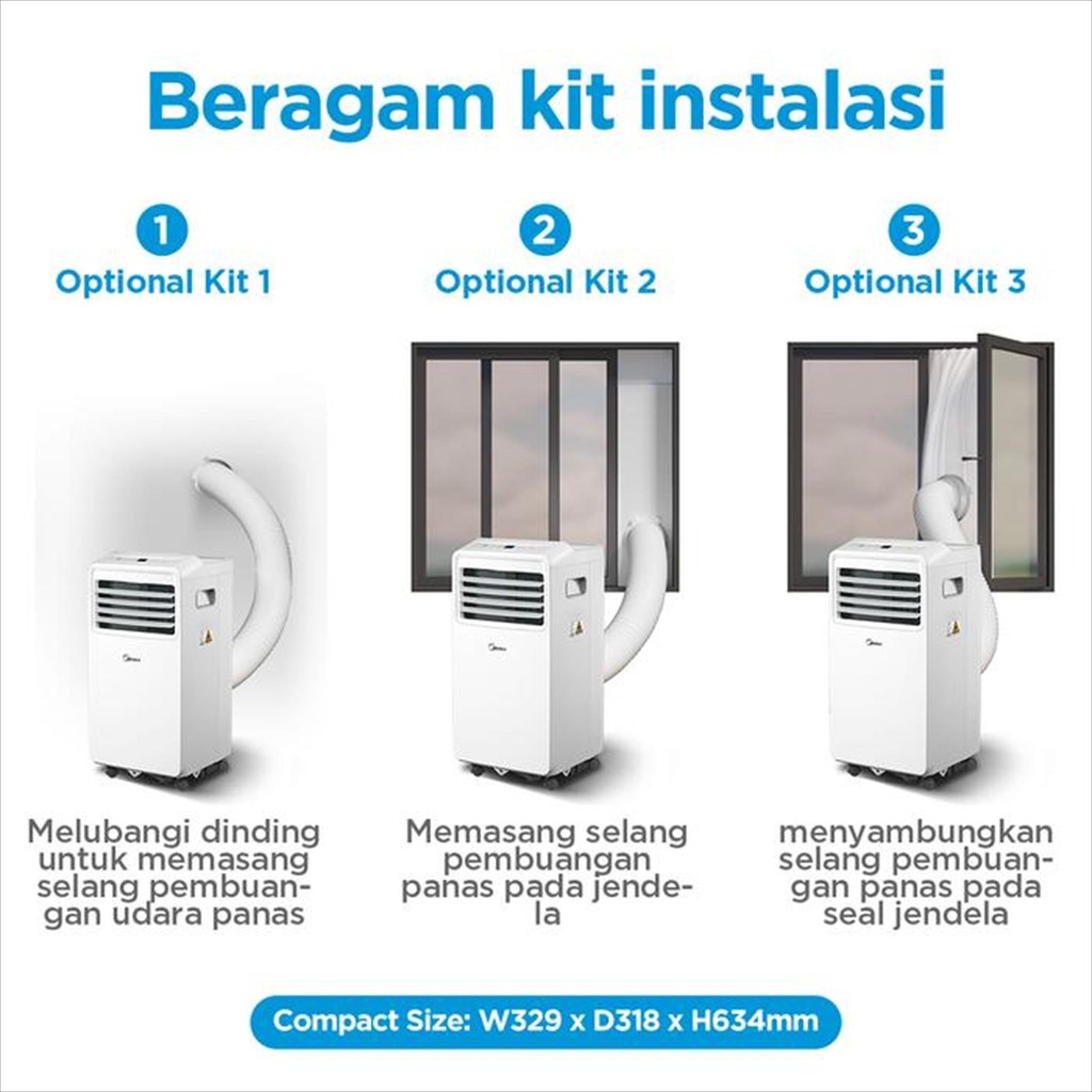Midea Ac Portable Mpha-05Crn7 0,5 Pk / Mpha 09Crn7 1 Pk / Mpf2 09Crn1 / Mpf2 12Crn1 Tanpa Instalasi