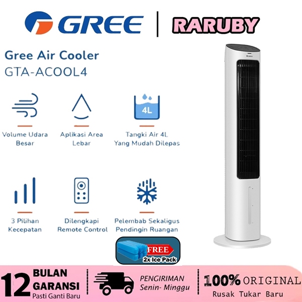 Gree Tower Fan Air Cooler Portable Ac Pendingin Ruangan Tamu Kamar Tidur Kapasitas 4 Liter Model Gta-Acool4