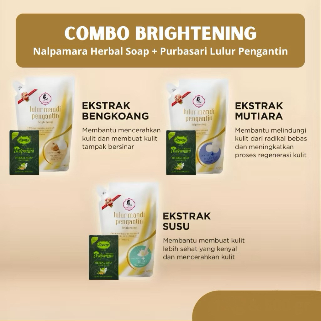 BUNDLING Hemat Mencerahkan Tubuh Sabun Pyary Nalpamara Sabun Herbal + Purbasari Lulur Mandi Pengantin 500 gr | Memutihka