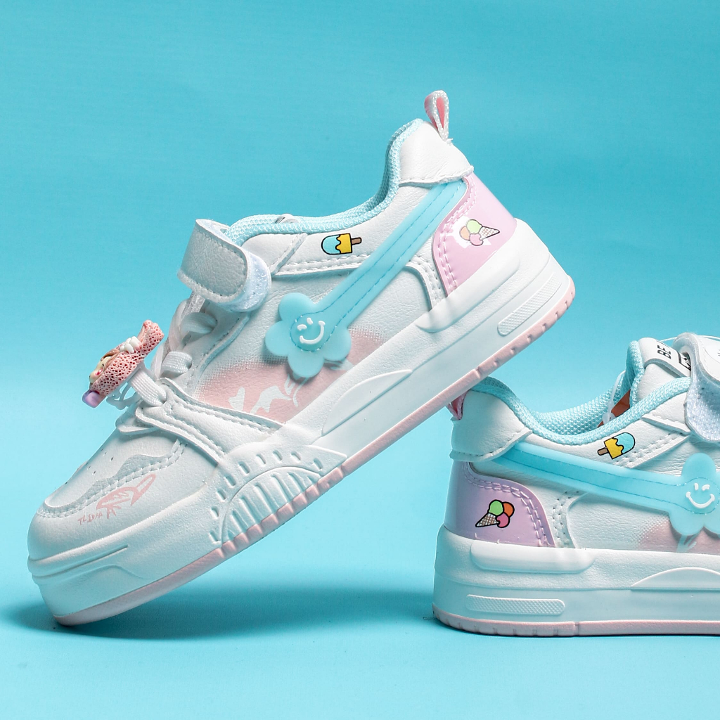 Sepatu Sneakers Sekolah Anak Usia 2-12 Tahun Sepatu Putih Motif Ice Cream Anak Perempuan - Kidsco