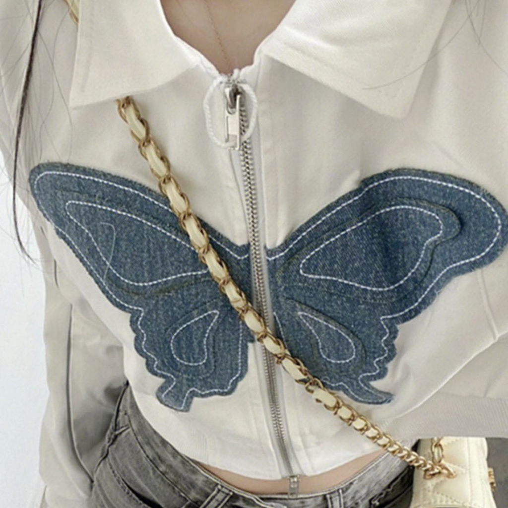 Nico##Zipper Jacket Crop/Jaket Croope Wanita Motif Bordir Butterfly