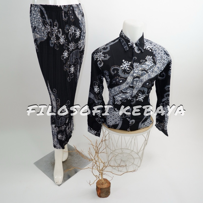 FILOSOFI KEBAYA - ROK PLISKET COUPLE LENGAN PANJANG BATIK SET ROK REMPEL MOTIF TERLARIS