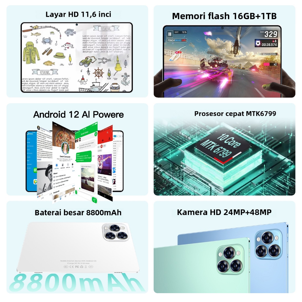 Xiaomi Tablet Pro12 | IPS 11.6" | 16GB+1024GB Murah Tablet Android 5G Tab Dual SIM Wifi Menonton Film dan Belajar Hibura