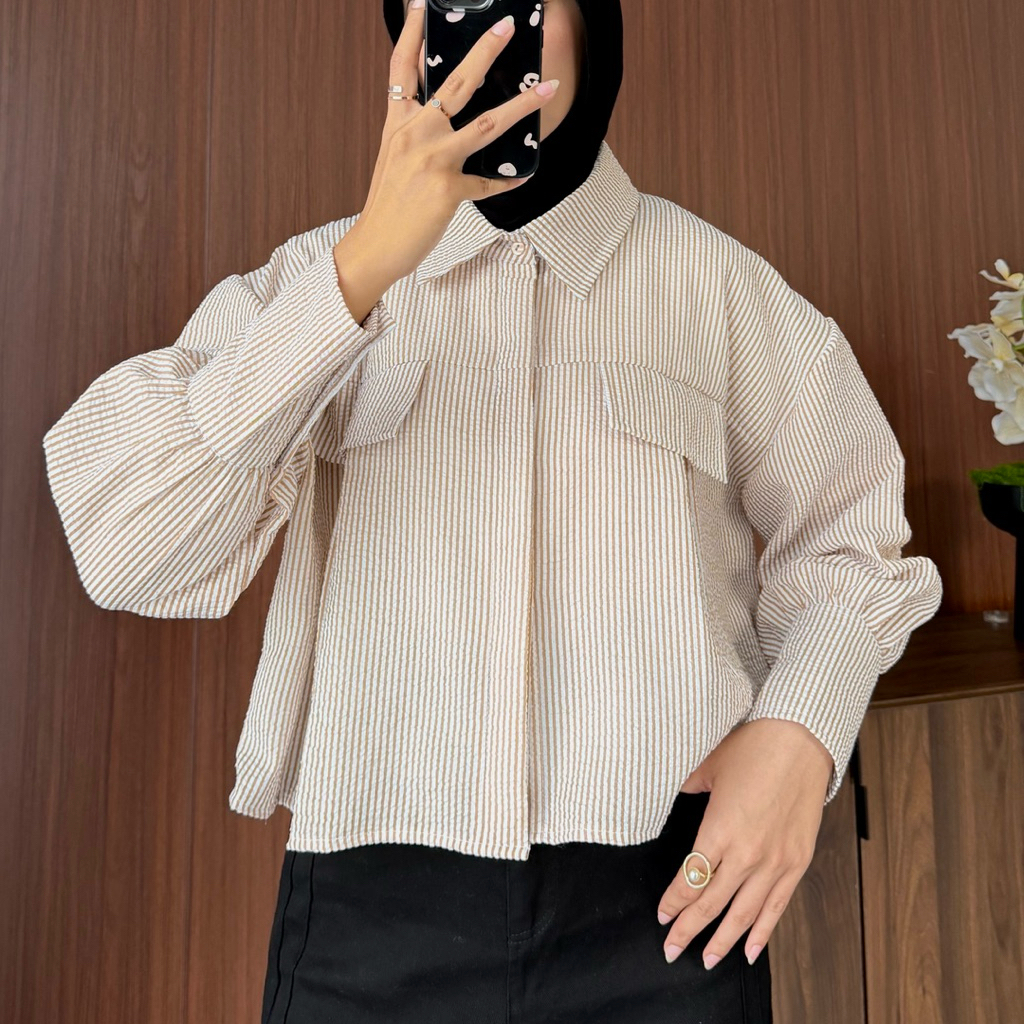 Zoey Stripe Crop Shirt - Kemeja Wanita Garis Garis Model Crop