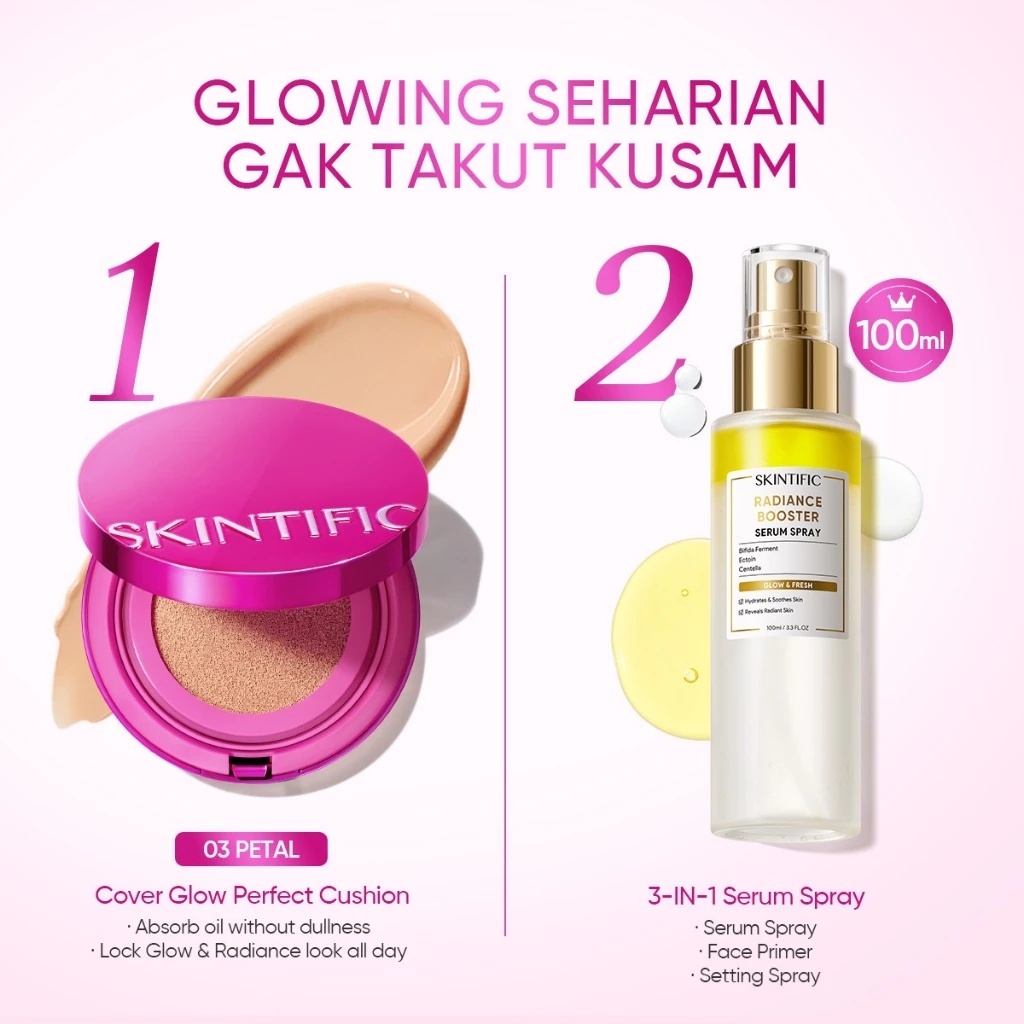 Watsons ORI SKINTIFIC-2PCS Glow Make-up Set | Cover Glow Perfect Pink Cushion & Glowing Serum Spray Combo High Coverage