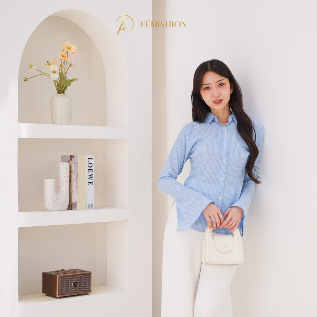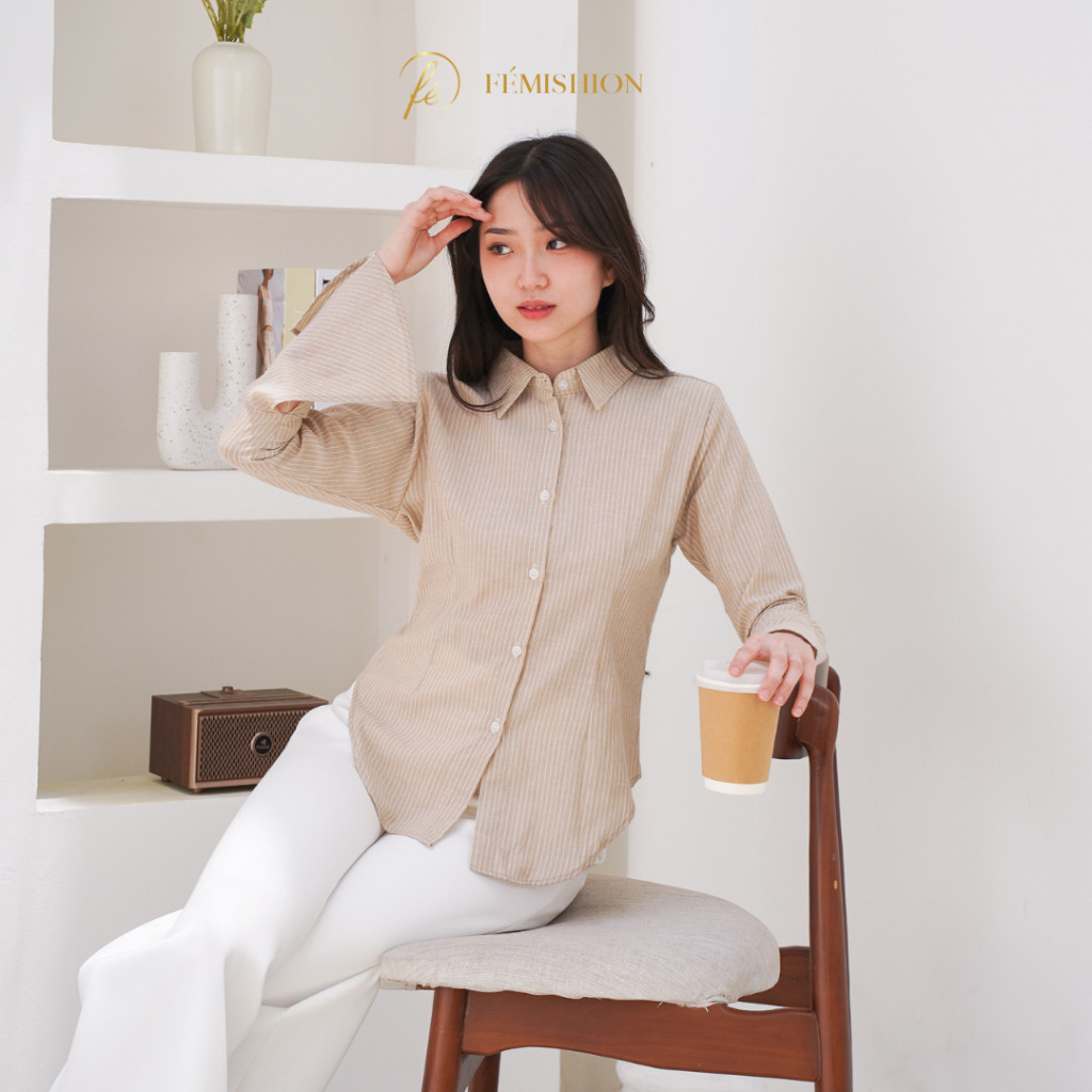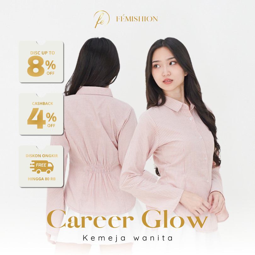 Femishion Career Glow | Kemeja Kerja Atasan Wanita Salur Fitted Berkaret Press Body Pink Biru Abu Slim Fit