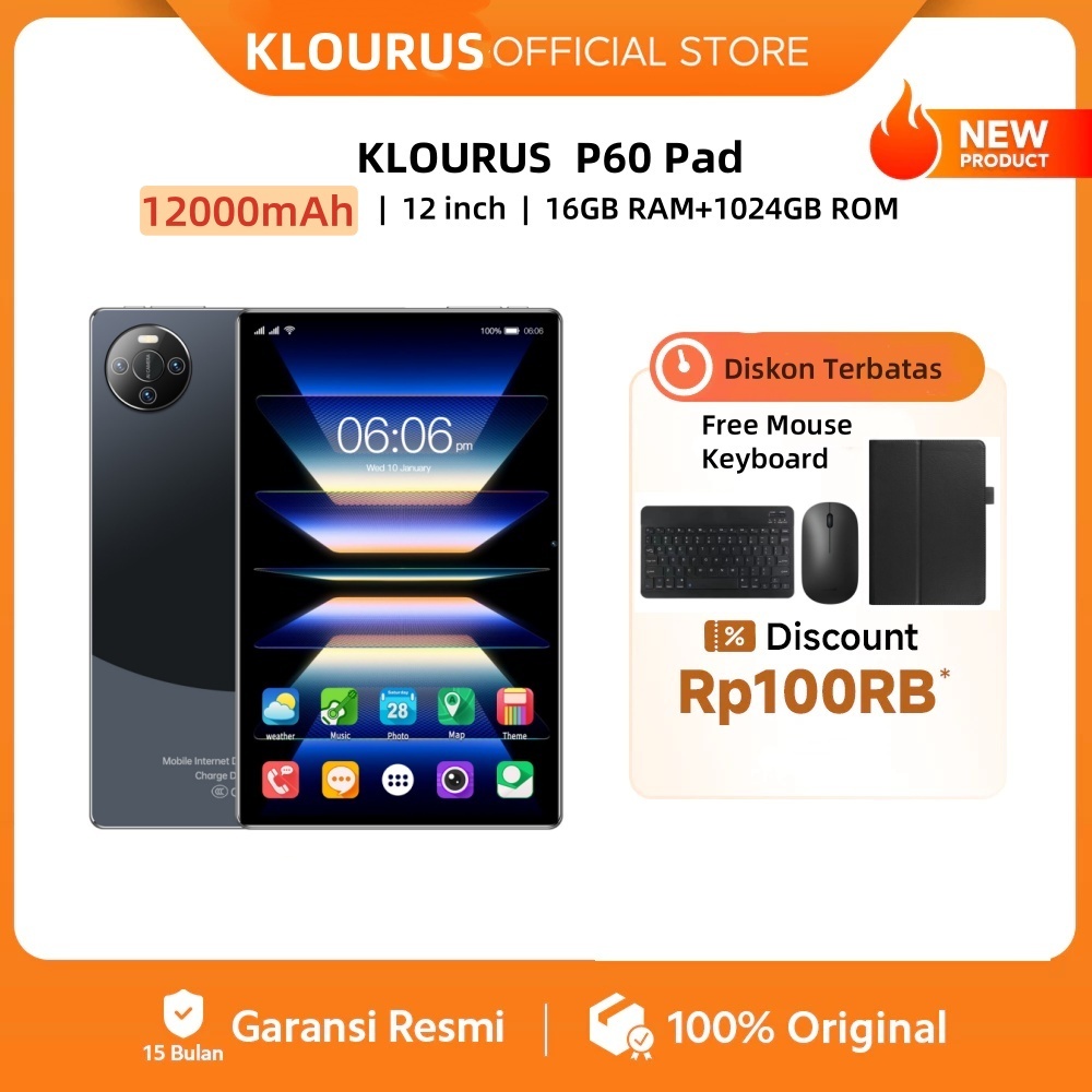 KLOURUS Tablet P60 Pro (16GB +1024GB) | IPS 11.6" | Tablet Murah untuk Belajar,Gaming, Kerja & Hiburan | 5G Dual SIM, Wi