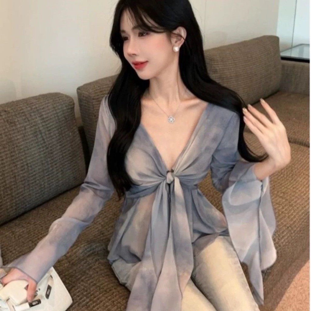 Kemeja Ceruk Tiedye Lengan Panjang Rumlai M695