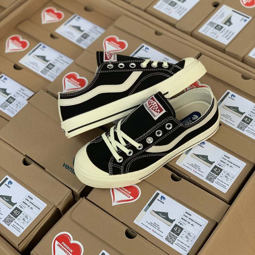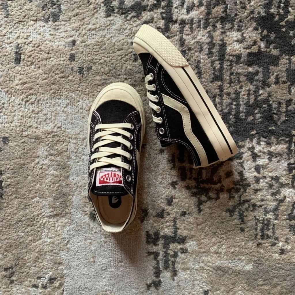 [JUNIOR] Ventela Public Low Black Natural / Sepatu Sekolah Anak Laki-Laki Perempuan SD / Sepatu Sneakers Anak Laki Laki Perempuan Tali