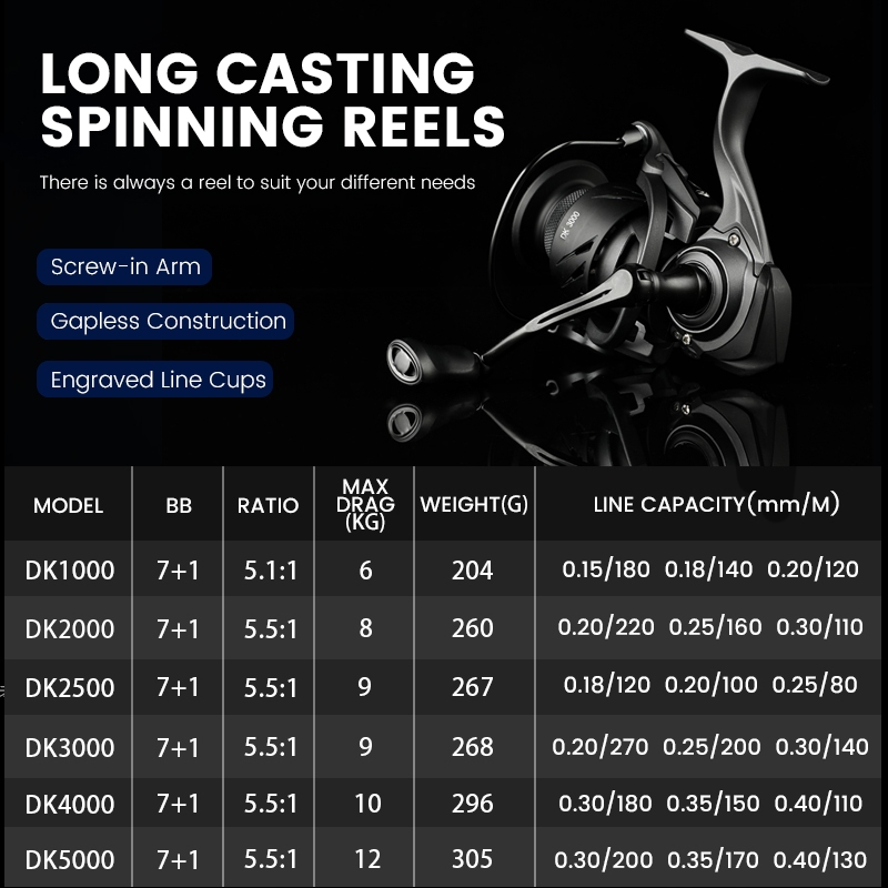 OFFICIALSEAHUNTER TINGHE DK Power Handle Reel Pancing,2500 Shallow Spool Spinning Reel,7+1BB Ball Bearings, 5.5:1 Gear Ratio,Kaki CNC & Piringan Gigi