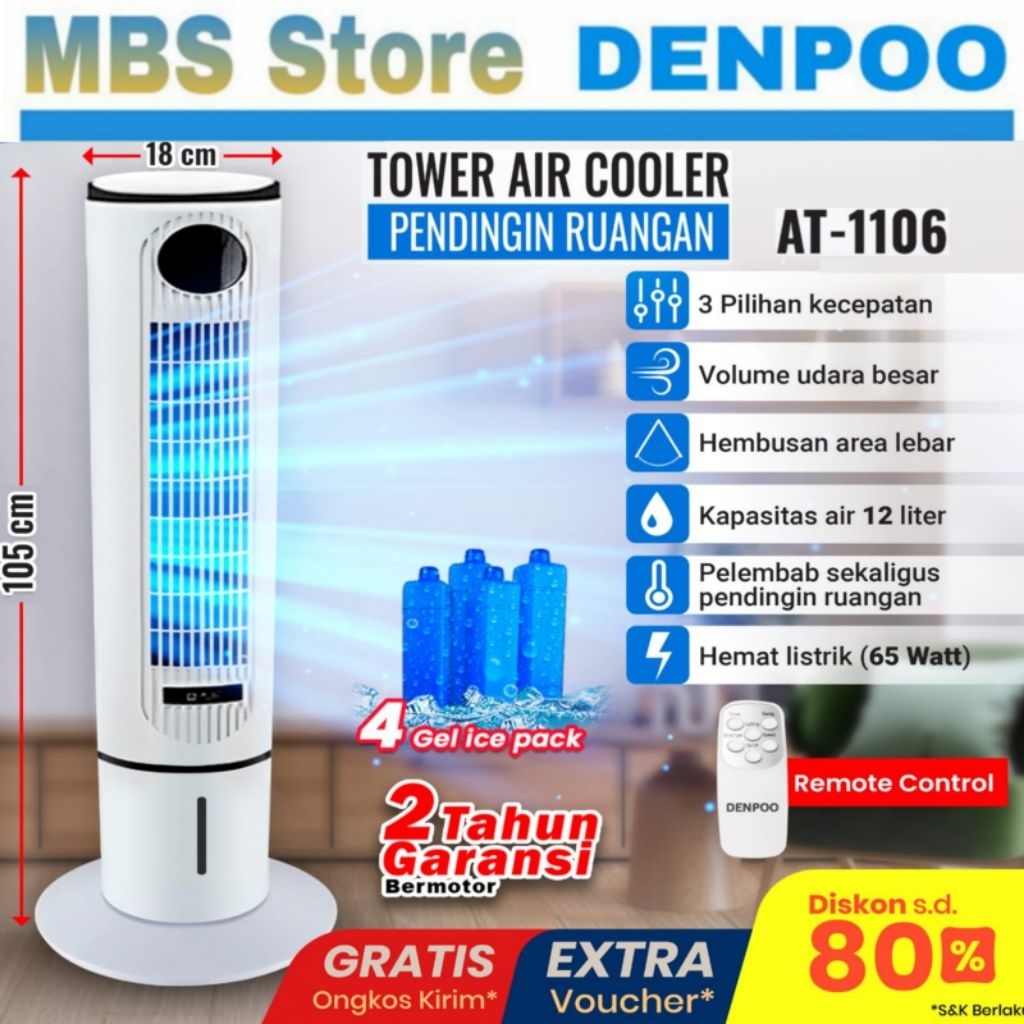 Tower Fan Air Cooler Denpoo Angin Kencang 65 Watt-At 1106 ( 4 Liter )