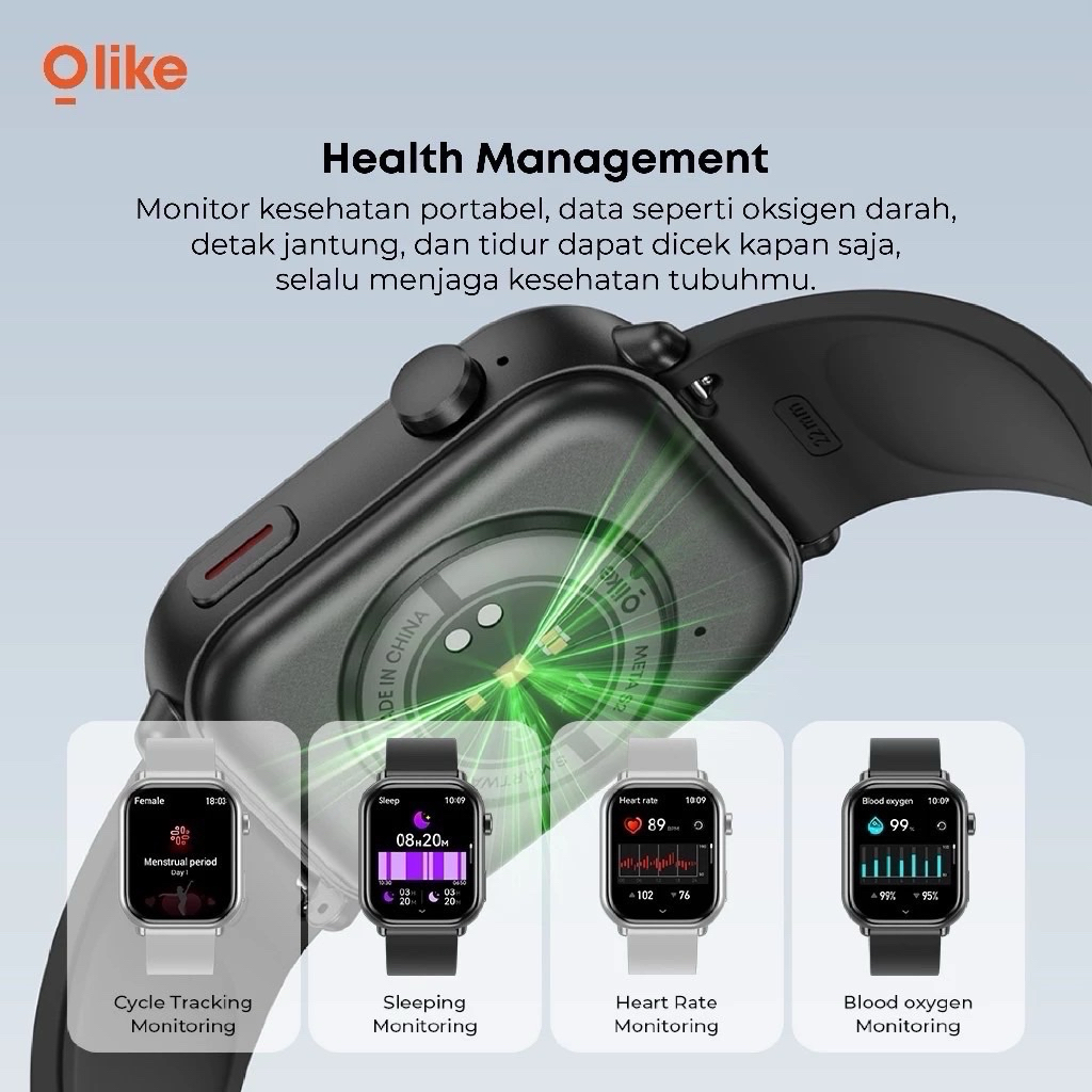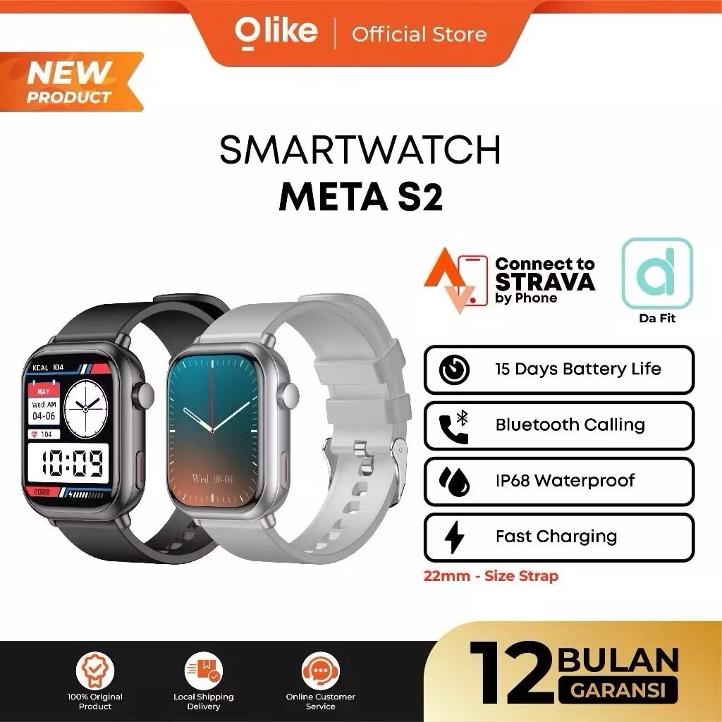 OLIKE Smartwatch Meta S2 1.83" HD Screen 1000mAh Sync Strava IP68 Tahan Air Healt & Sport Monitoring