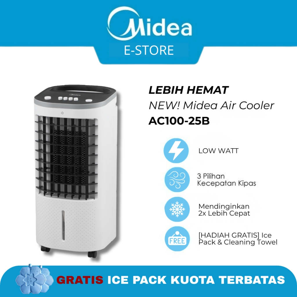 Original Midea Air Cooler Ac100-25B Portable 5L | Low Watt, 2X Lebih Cepat Dingin