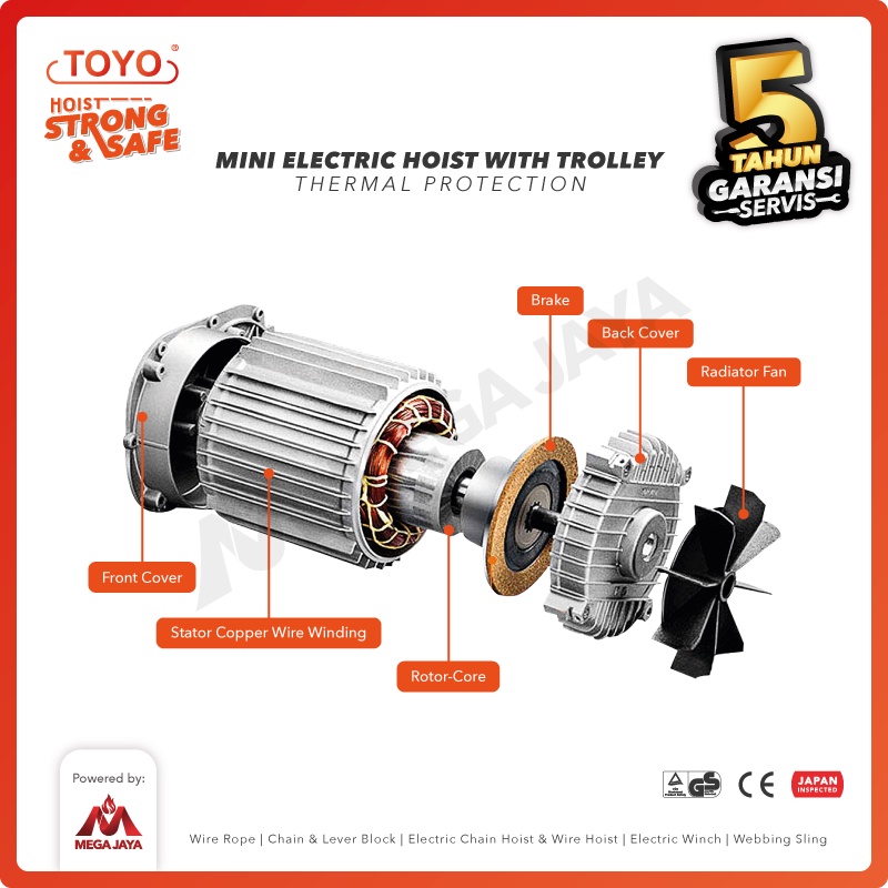 TOYO Mini Electric Hoist Trolley set / Katrol Listrik 300/600Kg x 20M