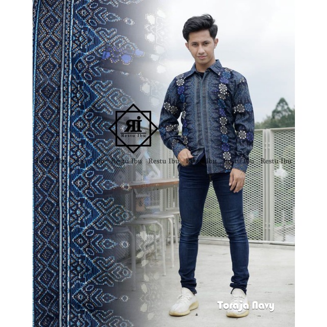 SET KEBAYA COUPLE KEMEJA BATIK AYAH ANAK MOTIF TORAJA NAVY BAJU BATIK COUPLE SETELAN KEBAYA TUNIK KURUNG WISUDA KONDANGAN MODERN JUMBO