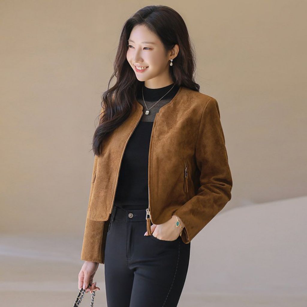 Womens Outer Suede Zipper Simple Elegant