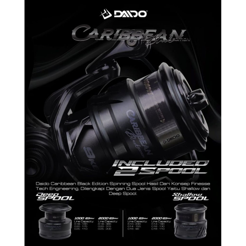 REEL POWER HANDLE DAIDO CARIBBEAN/CARIBBEAN BLACK EDITION 1000 2000 CARBON BODY GRATIS SPOOL MURAH