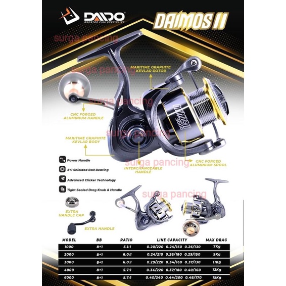 Reel Pancing daido daimos ultra sw / daimos II / pro series terbaru dapat 2 handle Dan bonus knob drag