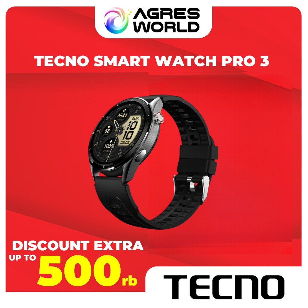 TECNO Smart Watch Pro 3 - Smartwatch AMOLED - IP68 Tahan Air - 110+ Mode Olahraga - Garansi Resmi Tecno 12+1 Bulan