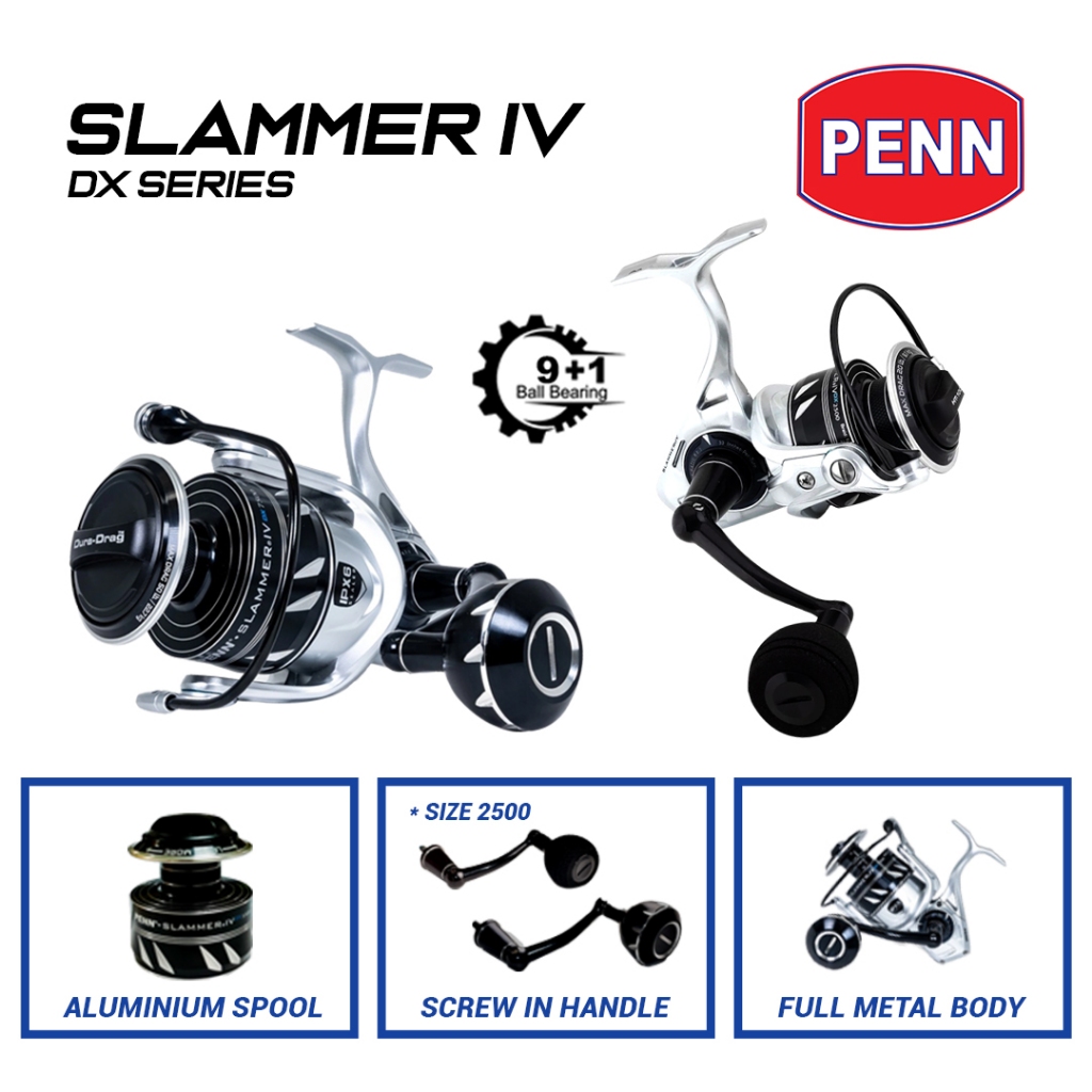Penn Reel Spinning Slammer IV DX Dura Extra 2500 - 8500 9+1BB IPX6 Sealed Full Metal Body Saltwater