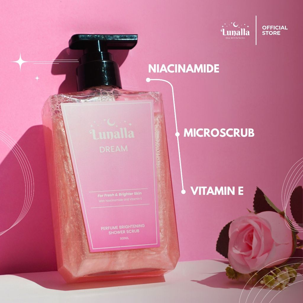 LUNALLA Dream Perfume Brightening Shower Scrub Sabun Mandi Cair 300 Melembabkan dan Mencerahkan