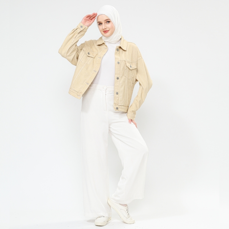 Myself Jaket Jeans Wanita Oversize Warna Khaki Lyra