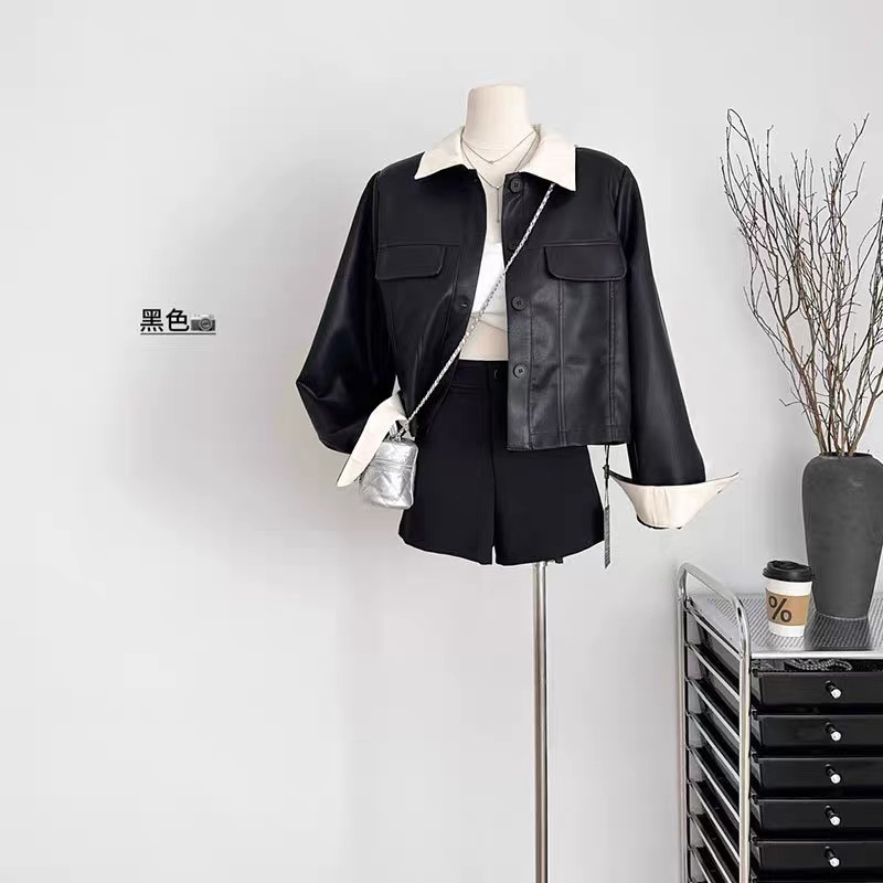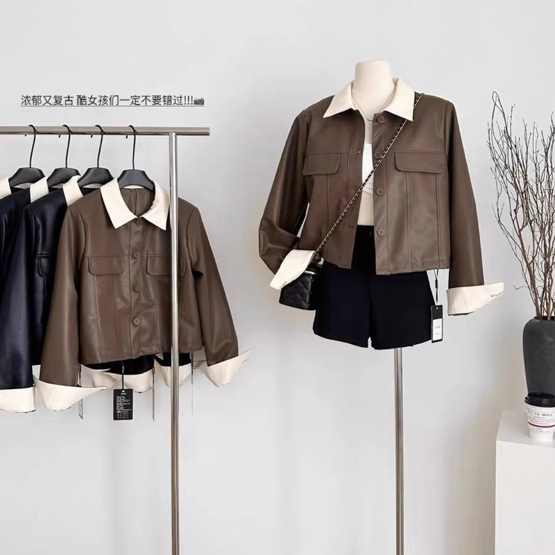 [Ready] Ethel Couture - Lydora Leather Jacket / Trendy Kasual Cokelat Hitam Lucu Wanita Luaran Dingin
