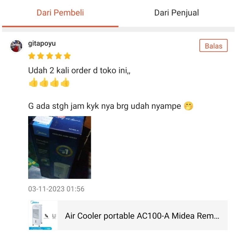 Air Cooler Portable Ac100-A Midea Remote 6 Liter 6L Pendingin Ruangan Stand