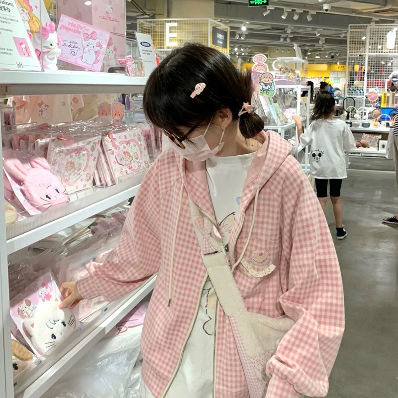 Yuka Pink Plaid Jacket | Milkteas | Jaket Wanita Lucu Motif Kotak Kotak Plaid Pink Pastel Jaket Kawaii Gaya Korea Jepang