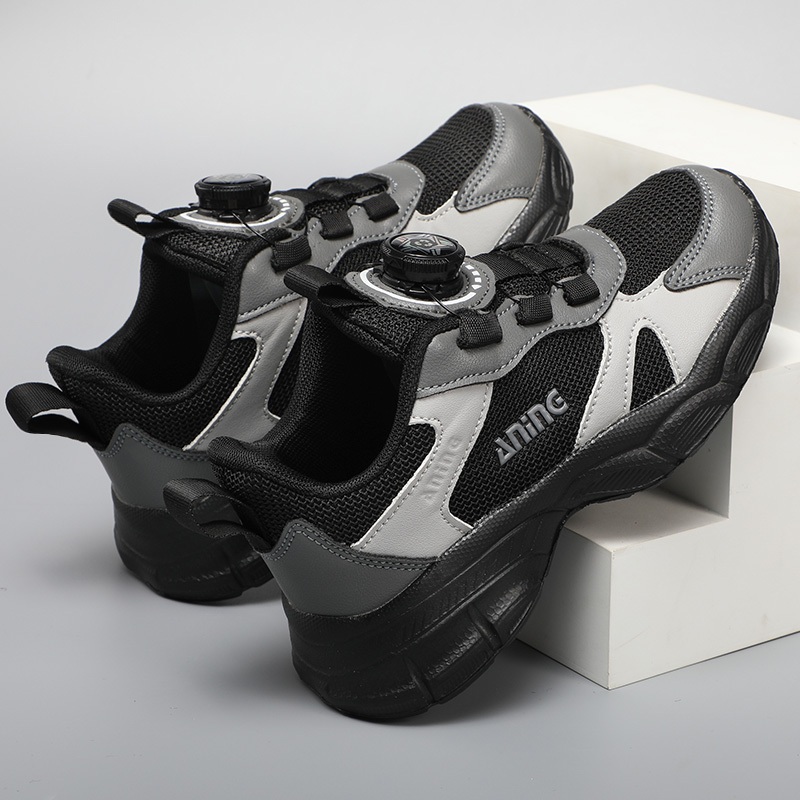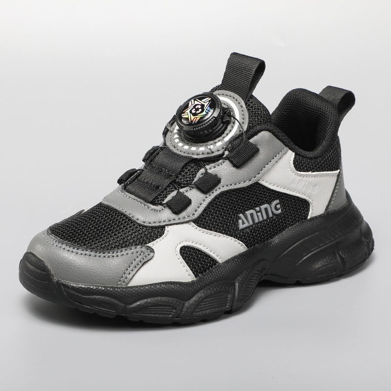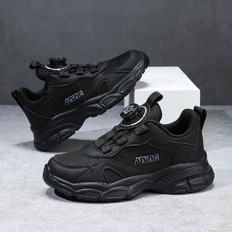 Aningboy Sepatu Olahraga Anak-Anak Hitam Sepatu Lari Siswa Bernapas Dan Ringan Siswa Sekolah Dasar