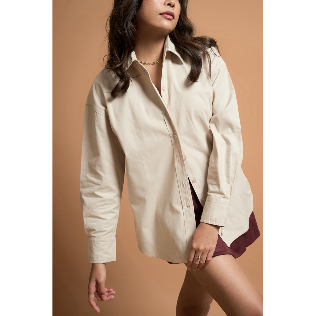 Natapola Agnes Oversized - Kemeja Lengan Panjang Oversized - Kemeja Oversized Salur - Oversized Shirt