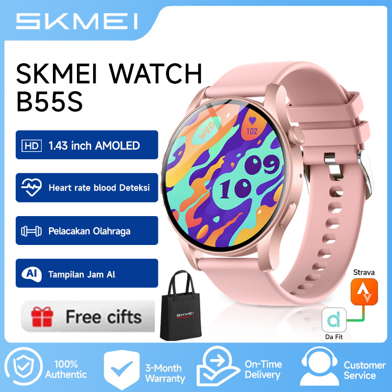 skmei b55s Smart watch wanita AMOLED Full Touch Screen Pemantauan SpO2 24 Jam/Bluetooth call /Data tidur/jam tangan wani