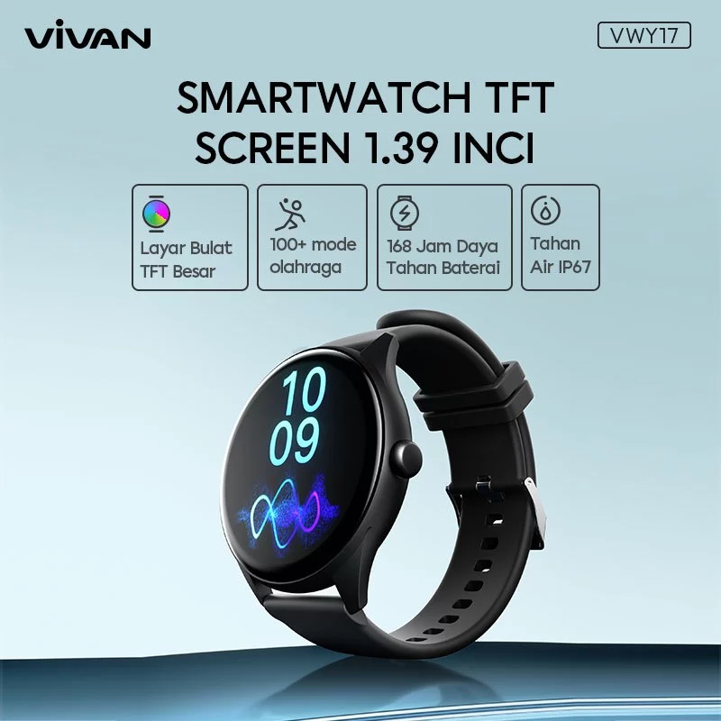VIVAN Smart Watch VWY17 Jam TFT Screen Waterproof IP67 Sports Mode 100+ Health Monitoring Original