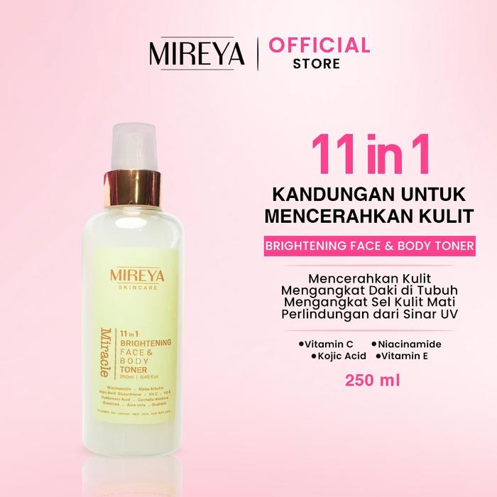 Mireya 11 in 1 Miracle Brightening Face & Body Toner 250ml Toner Wajah & Tubuh Ukuran Besar, Bantu
