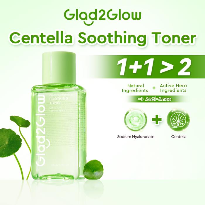 Glad2Glow Centella Toner Ceramide Super Soothing 80ml Calms Acnes & Bumps Reduces Redness &