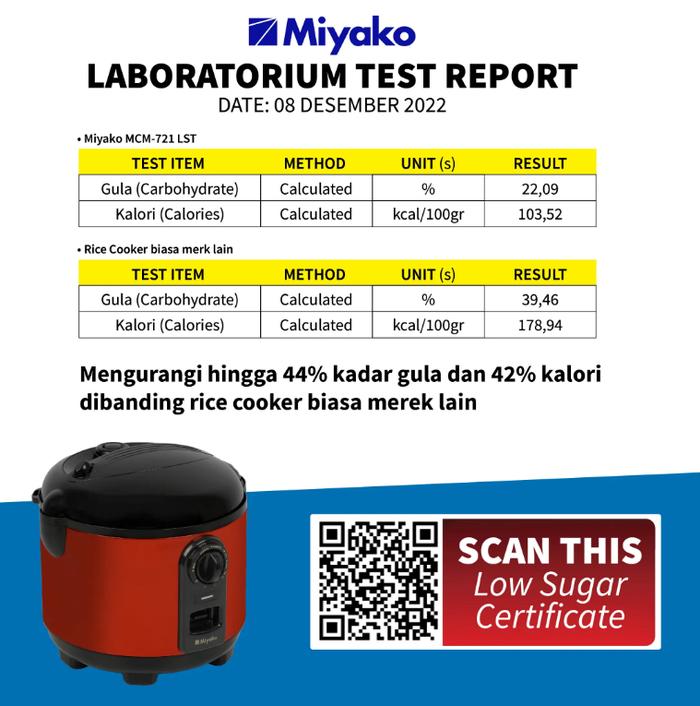MIYAKO MCM-721 LST Magic Com / Rice Cooker 1,8 Liter 5 in 1 (Low Sugar, Low Carbo, Anti Lengket)