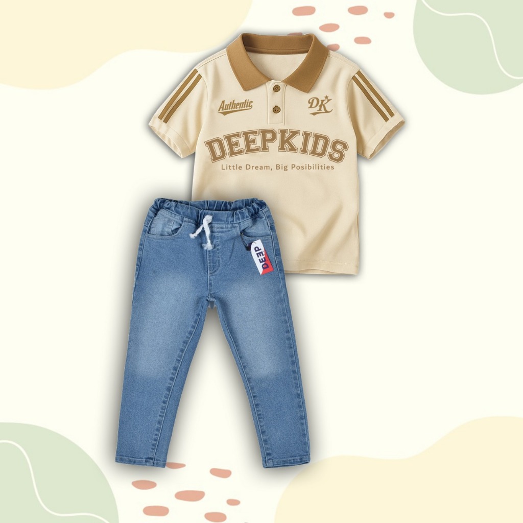 Setelan Anak Laki Laki Kaos Kerah Polo & Celana Jeans Panjang Bahan Cotton Combed 24s dan Denim Jeans Premium Usia 1 2 3 4 5 6 7 8 9 10 11 12 Tahun | Set Hyuga Jeans Pjg