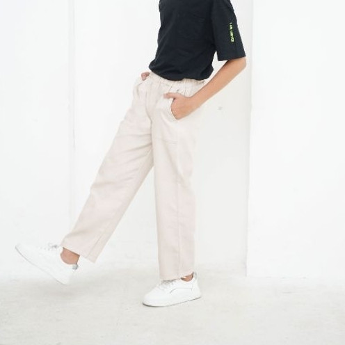 AWESOMEKIDS 2-15 th Groovy Pants Celana Chino Basic Panjang Anak Denim Laki Perempuan Putih Cream