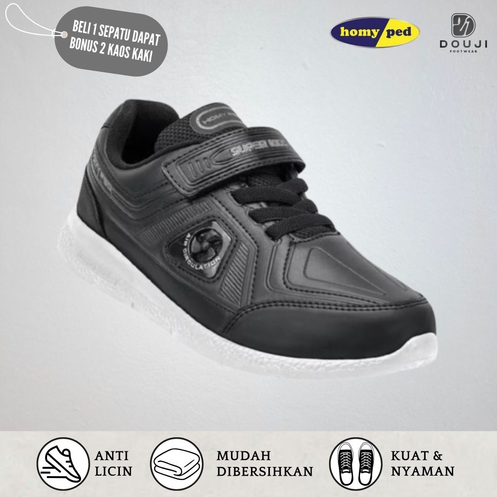 Sepatu Sekolah Anak Homyped Hitam Putih Series Genius 03, Skyver 03, Vision 03 Produk Original Terlaris Gratis 2Pasang K