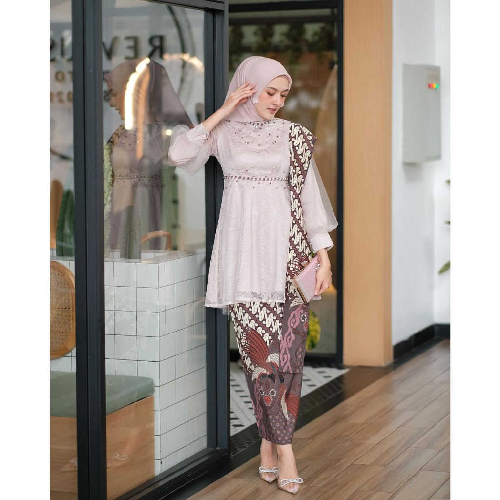 Kebaya Wisuda Couple Nadin Modern Kebaya Set Tunik Lamaran Tunangan Batik Baju Couple Kondangan Terbaru 2023