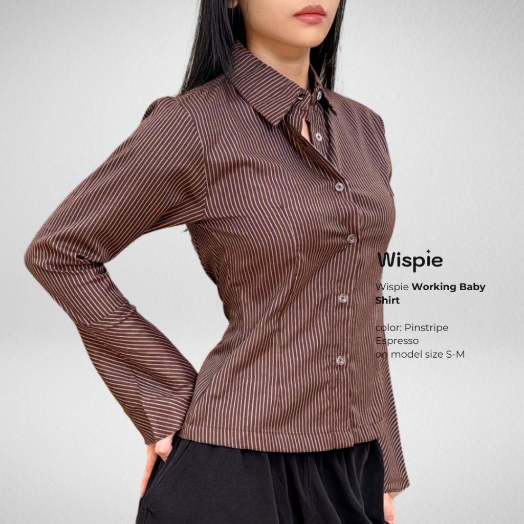 Wispie Working Baby Shirt | Fitted Shirt Kemeja Salur Kantor Kerja Wanita Lengan Panjang Formal Slimfit Korean Office Si