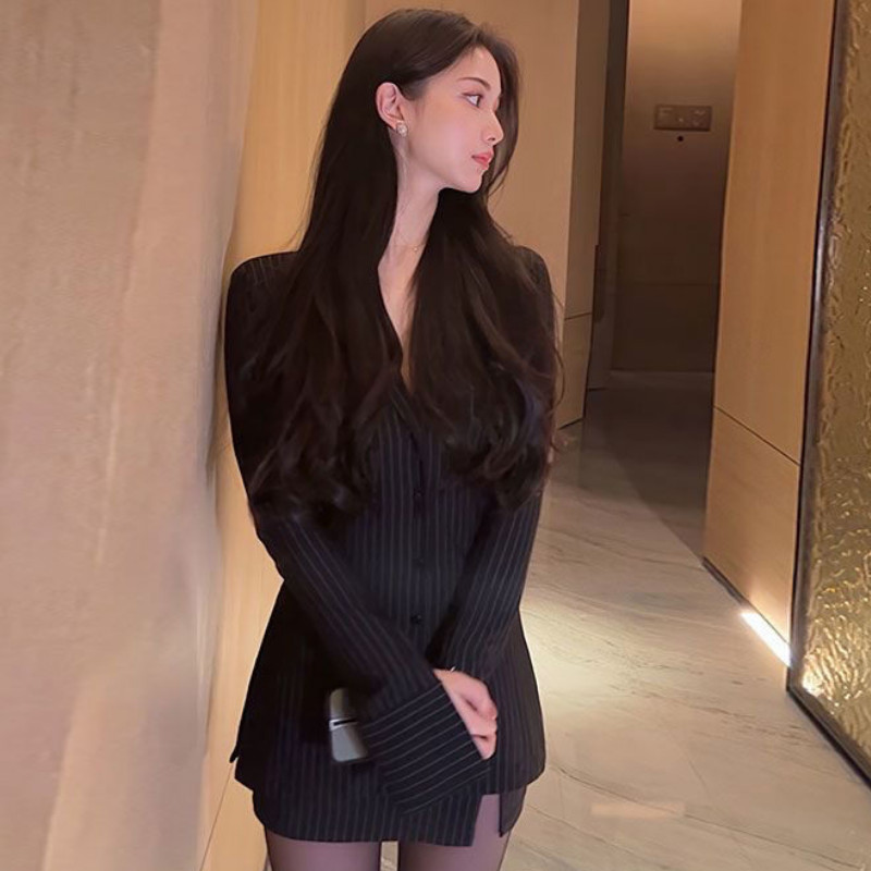 Kemeja Lengan Panjang Wanita Ala Korea Kemeja Bergaris Hitam Kemeja Lengan Panjang Slim Fit Pinggang Kasual