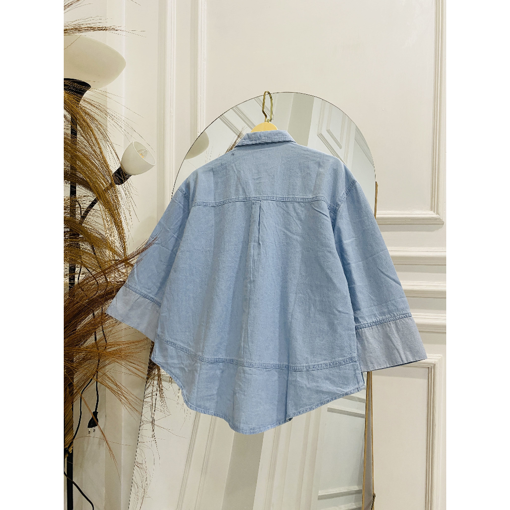Meltz.Id - Atasan Kemeja Jeans Oversize Polos Perca Bunga Lengan Panjang Wanita Dewasa